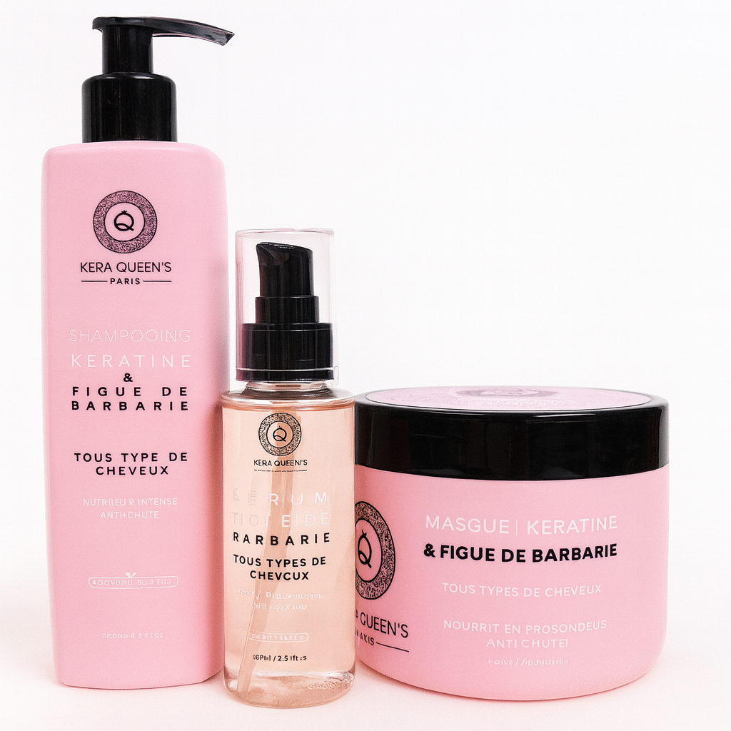 Kit Soin Kératine & Figue de Barbarie – Shampoing, Masque et Sérum Professionnels Anti-Chute Tous Types de Cheveux